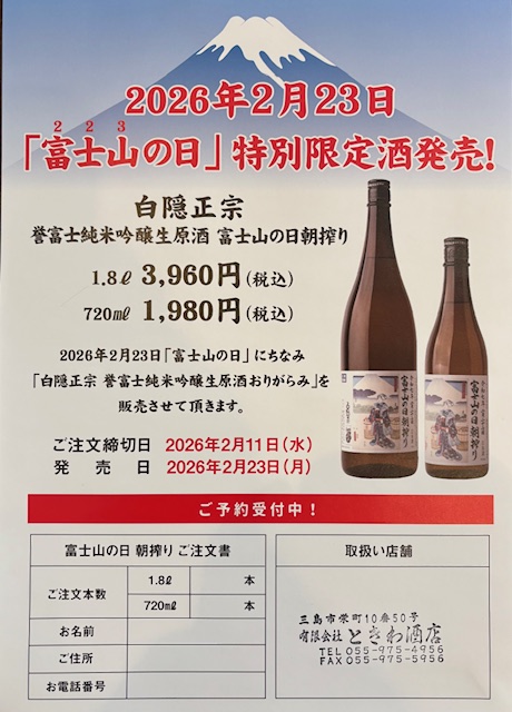 富士山の日の特別限定酒 ご予約承り中です!