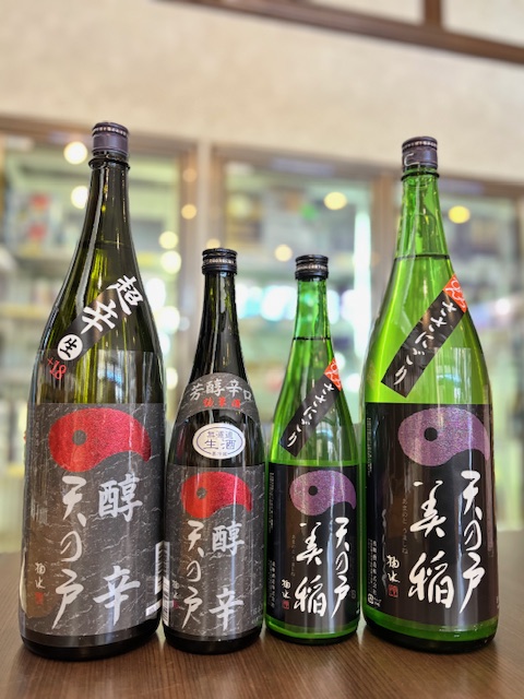 辛いだけじゃない、柔らかい天の戸らしい旨味のある芳醇辛口酒や、フレッシュでクリアな旨味が特徴の芳醇旨口酒の生酒が揃っています。同じ蔵のつくりの違いを飲み比べてみるのもおもしろいですね。