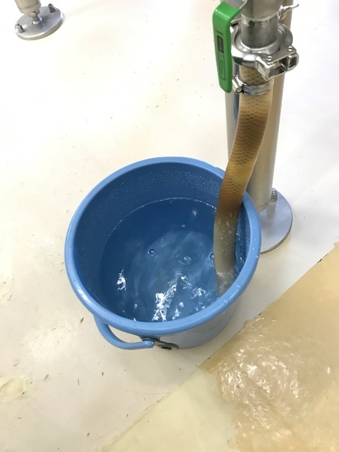 発酵中のタンクからホースを通して余分な二酸化炭素を逃がしています。タンクの破損を防ぐ為です。